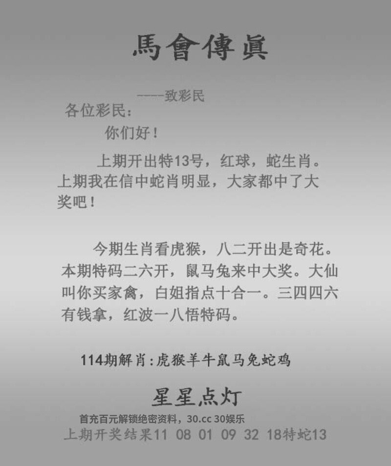 114期:【正版马会传真】{开:兔39} 今期生肖看虎猴,八二开出是奇花 本期特码二六开,鼠马兔来中大奖 大仙叫你买家禽,白姐指点十合一 三四四六有钱拿,红波一八悟特码 星星点灯 综合取肖:虎猴羊牛鼠马兔蛇鸡 ![]() |
